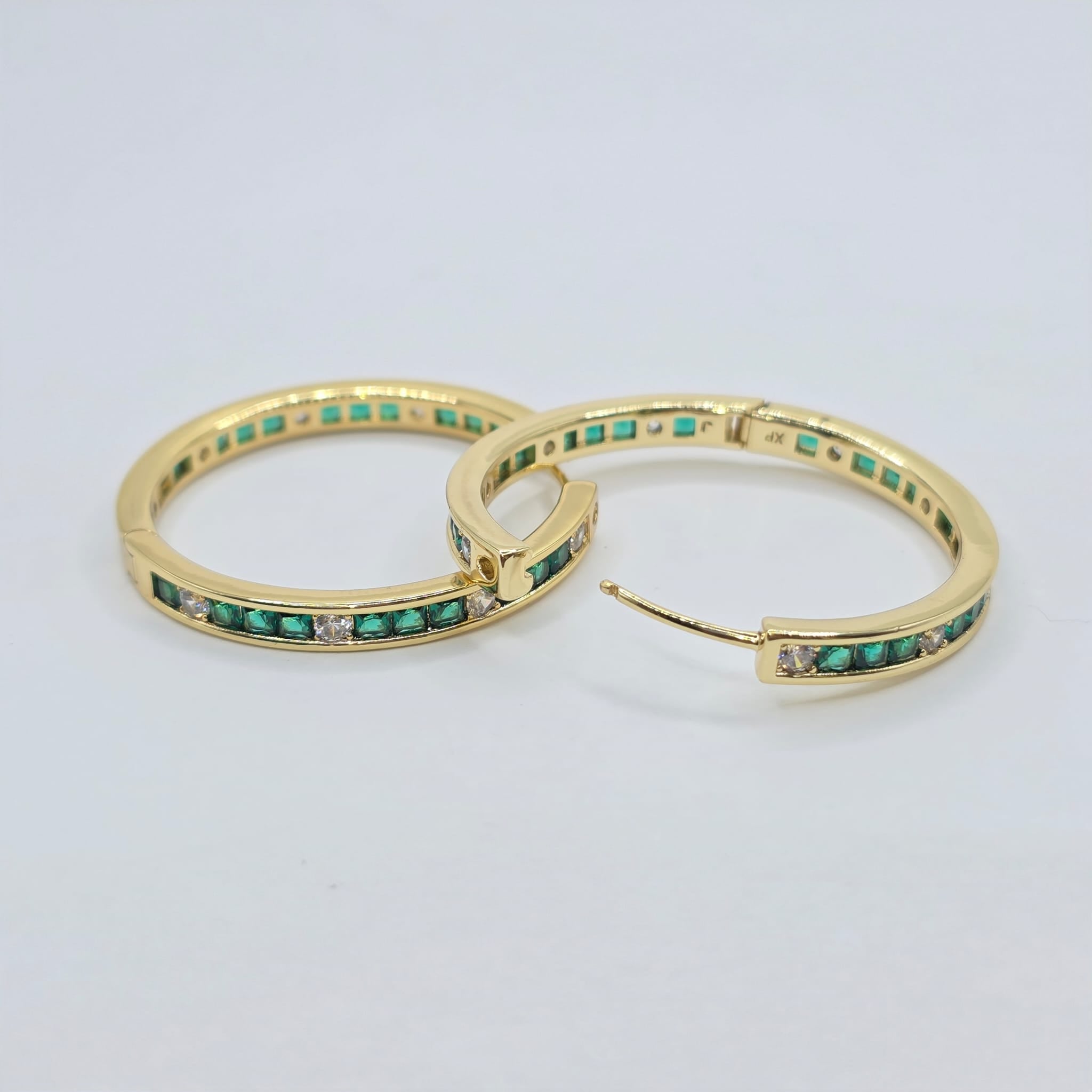 pendiente de aro con piedra verde y blanca