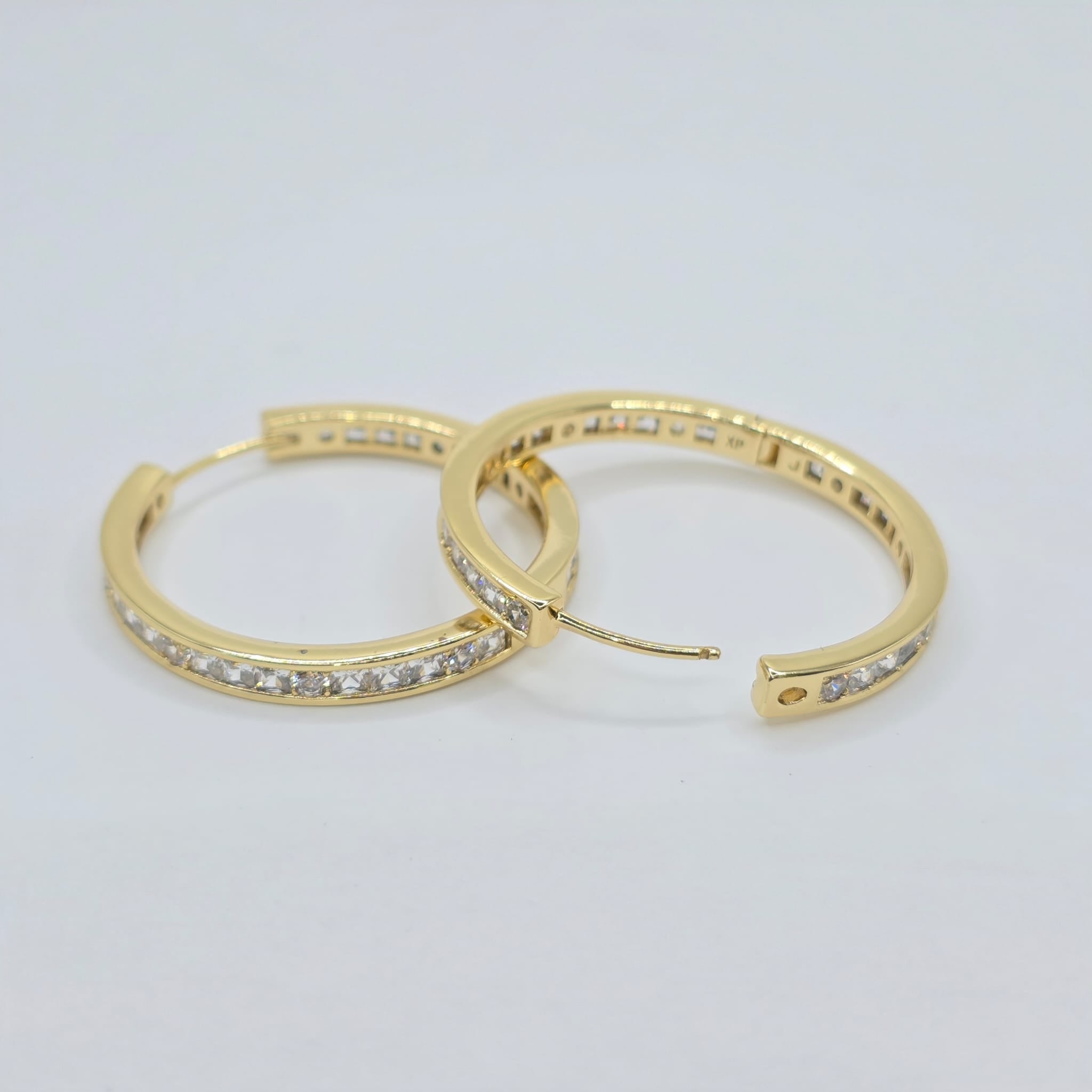 pendiente de aro con piedras blancas