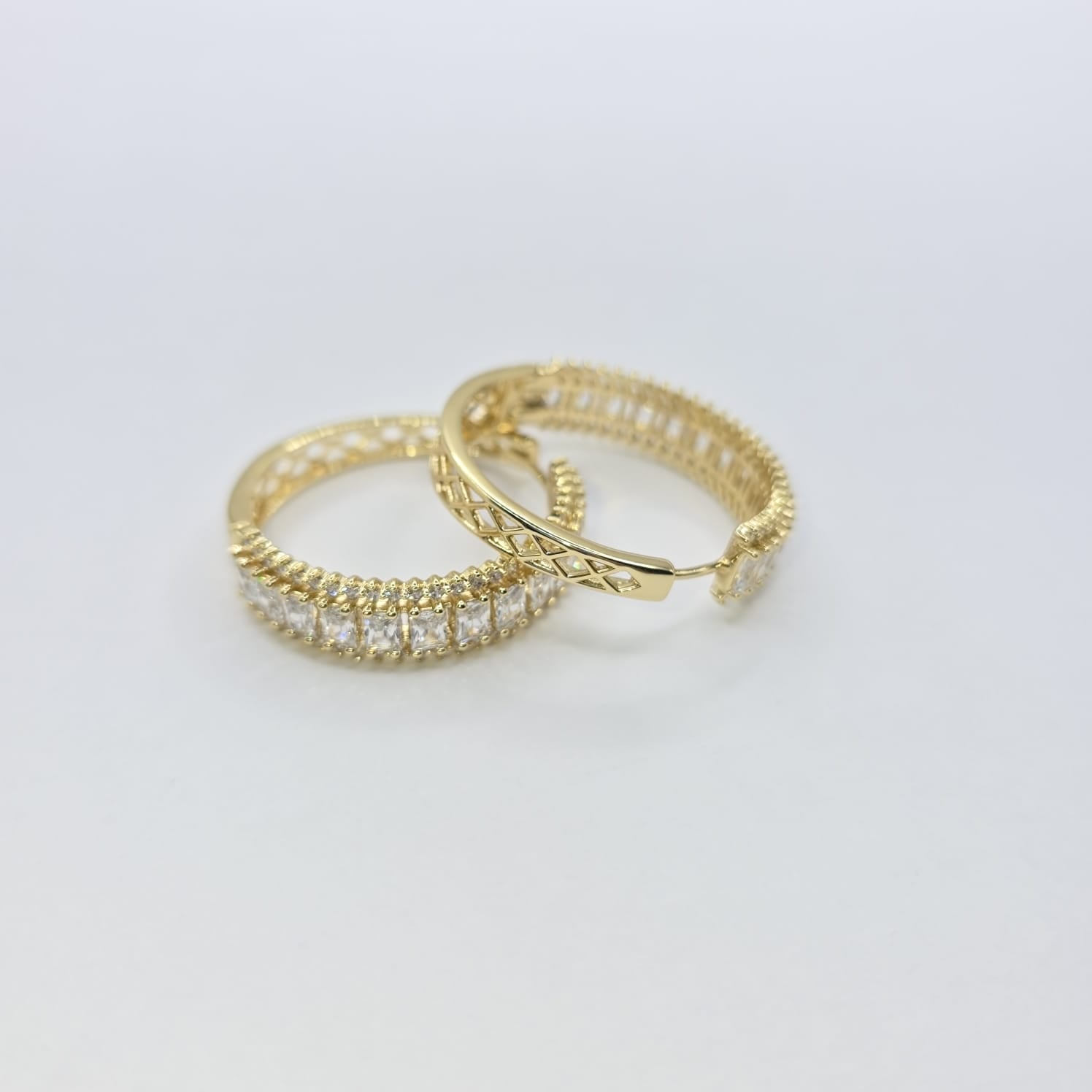 pendientes de aro con piedra blanca