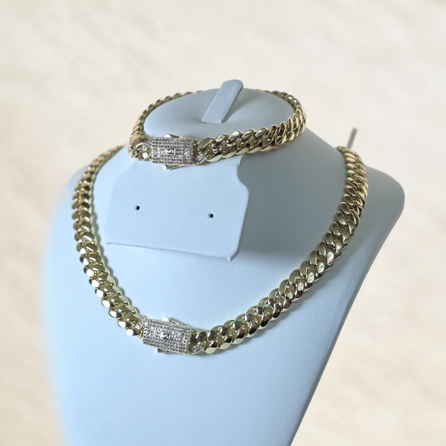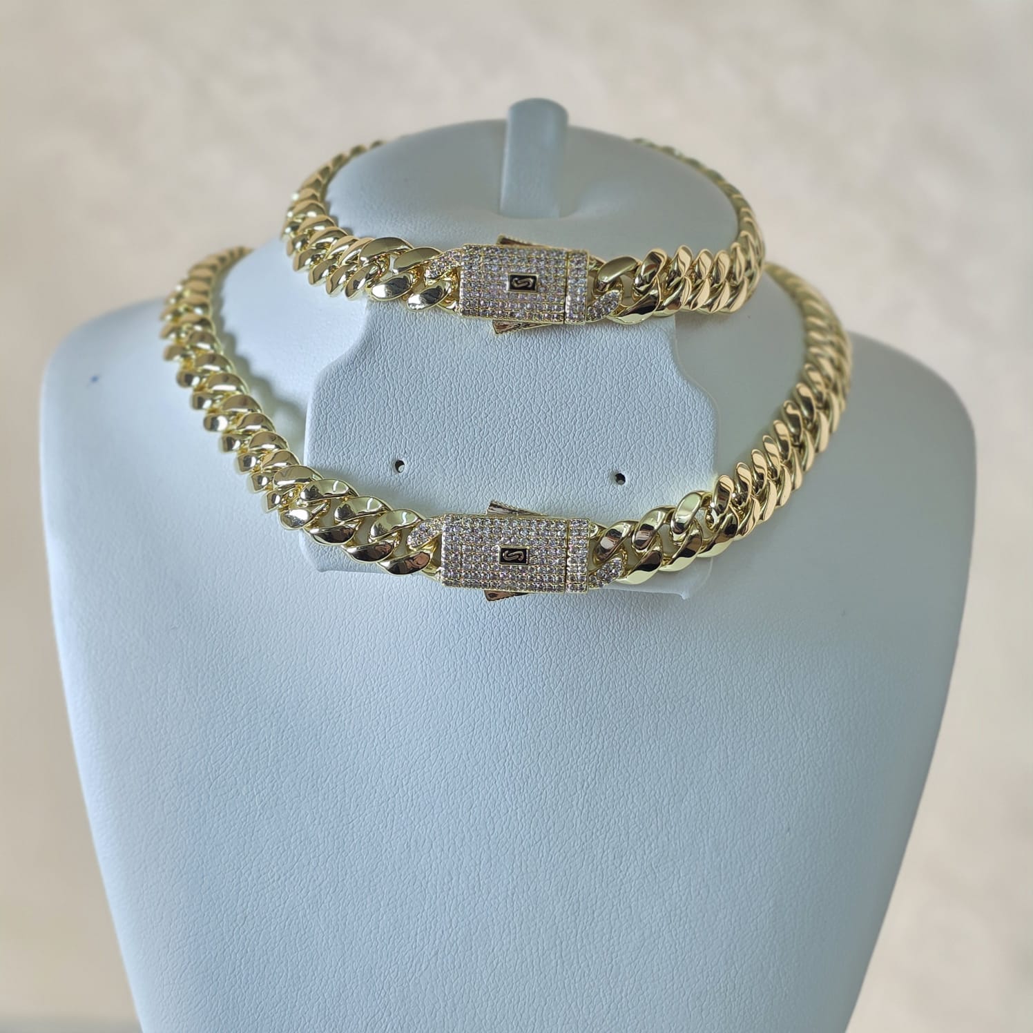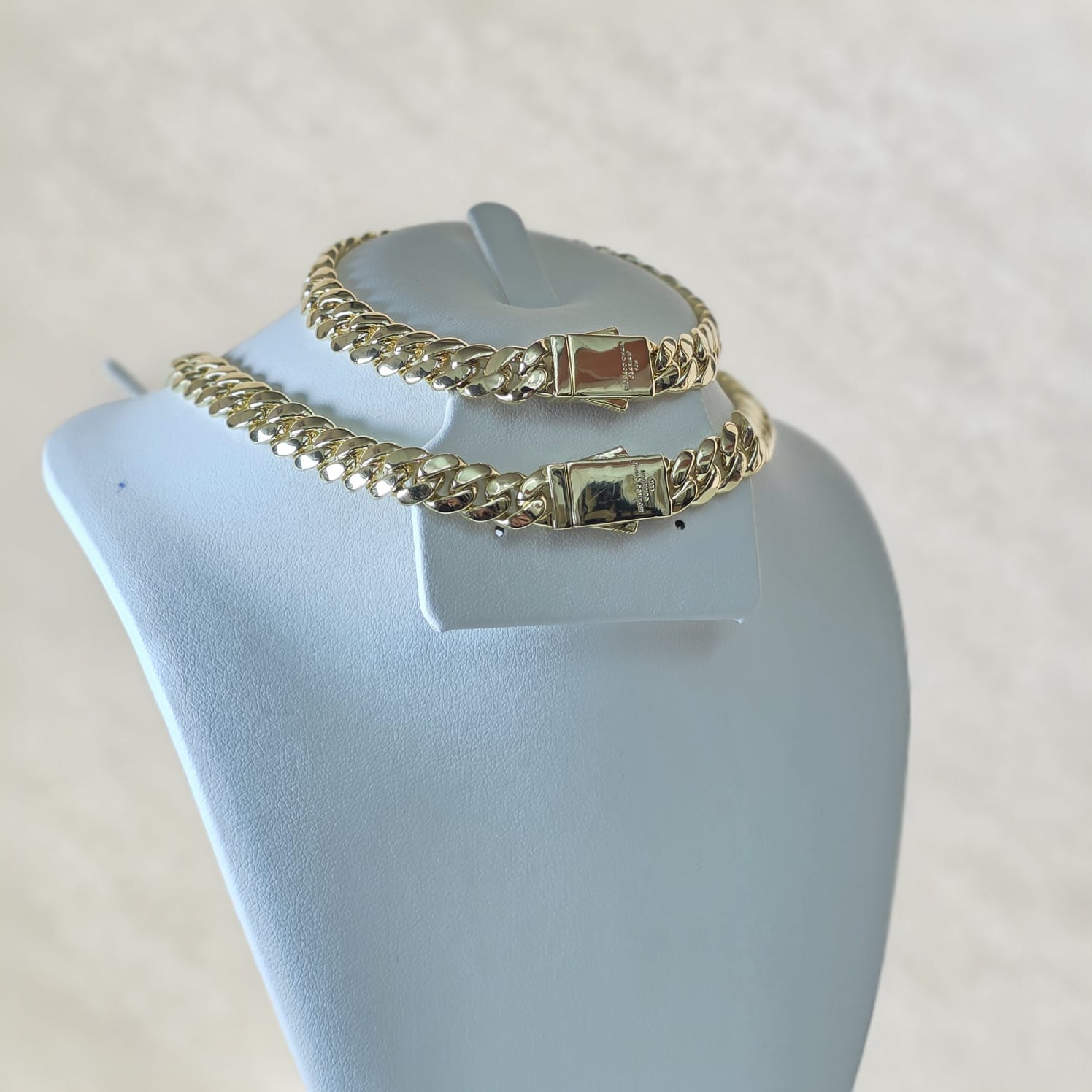 Nuestra exclusiva cadena Mónaco de 10mm cuenta con un baño extra de oro real y una capa de laca protectora, además de nuestra contramarca "CLARIAM Y EL 14K". Brindamos 3 meses de garantía para asegurar la calidad y exclusividad a nuestros clientes.